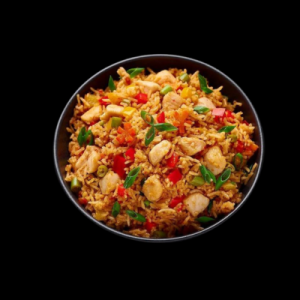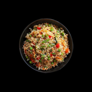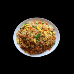Stir fried rice cooked with veggie chicken or eggs to perfection.