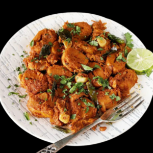 Boneless chicken cooked with coconut and traditional south Indian spices