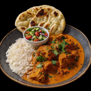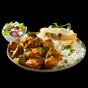 Butter Chicken with Naan, Rice and Salad