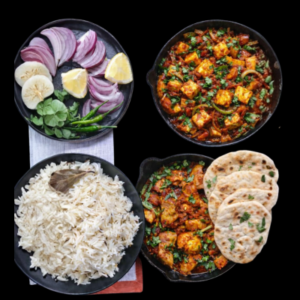Paneer Tikka Masala with Naan, Rice and Salad
